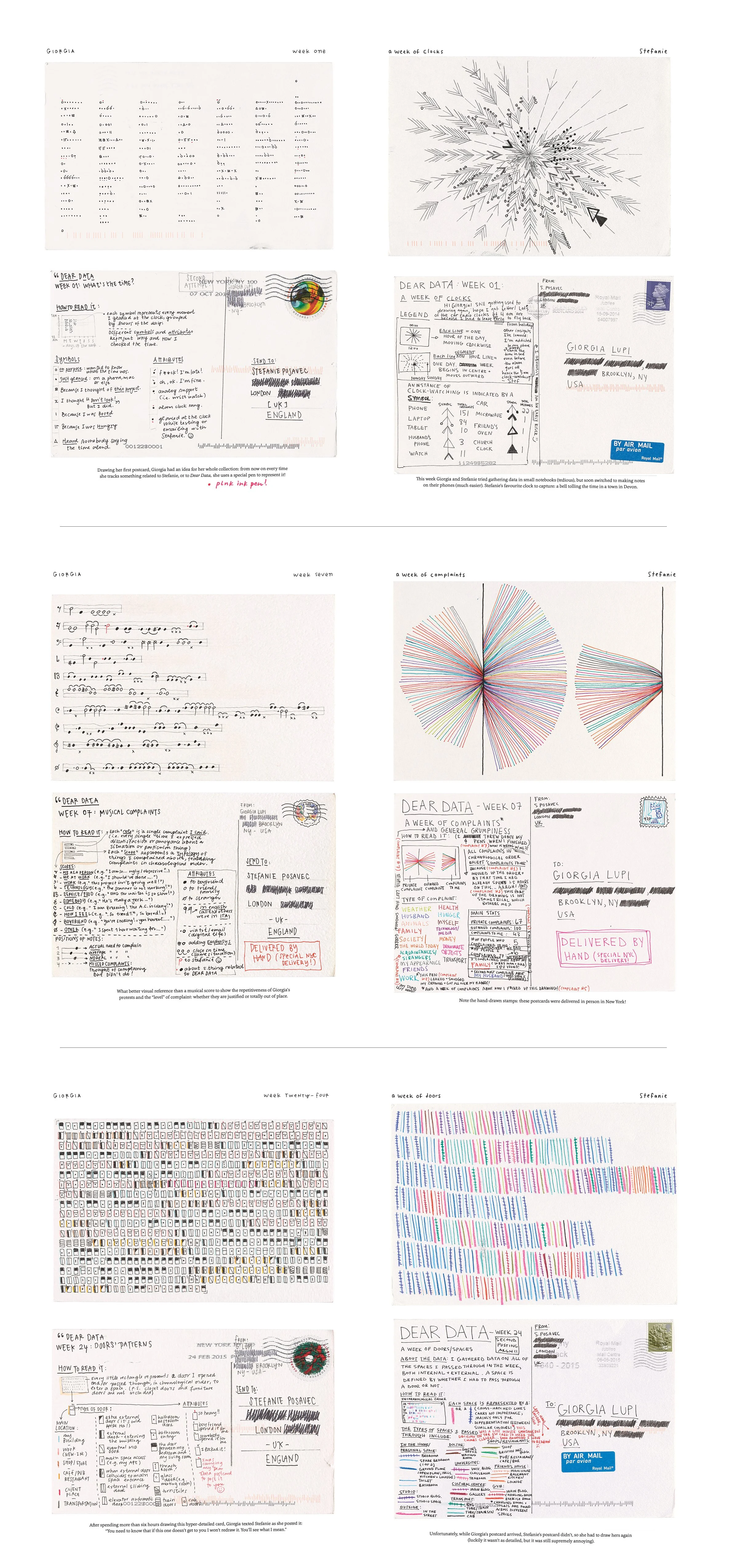 Dear Data es el proyecto de dos diseñadoras: una italiana residente en EEUU y una americana que vive en Londres. Durante un año, han recogido datos de sus vidas personales, los han representado visualmente y se los han ido enviando en postales de un lado al otro del charco. Del proyecto ha salido una gran amistad y un libro precioso. La gran Debbie Millman, ha dedicado un episodio de su podcast Design Matters a este proyecto inspirador. Si no lo conoces ¡échale un vistazo!